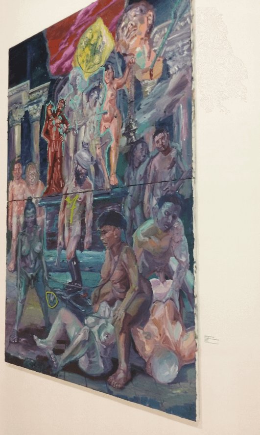 Primeiramente, ele fala na diferença como alteridade. Isso não passa de um curto-circuito cerebral dos ditos especialistas em arte contemporânea que já há tempos se distanciaram do verdadeiro objetivo da arte: a consagração do belo. Hoje o artista precisa causar impacto, e só. Veja outra das obras expostas para melhor ilustrar: