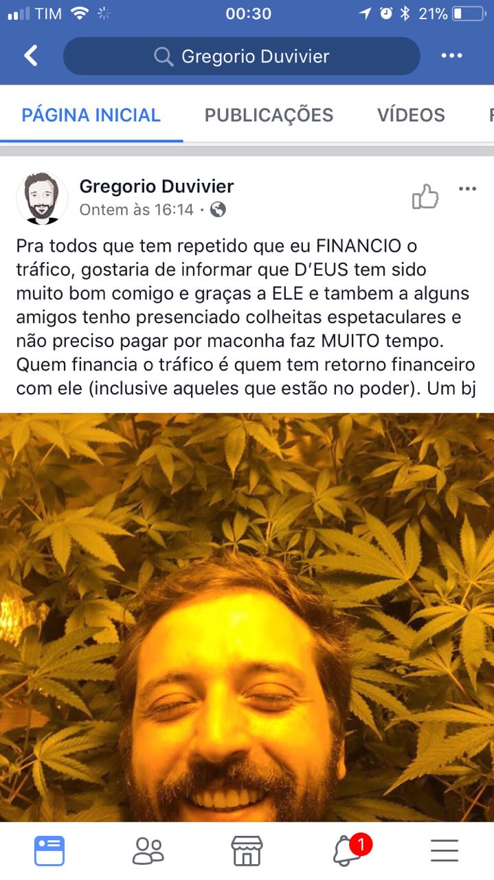 de Janeiro, e agora declara que faz uso de droga [maconha] sem que precise