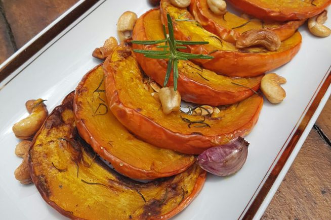 Abóbora assada com alecrim é um acompanhamento que segura a fome