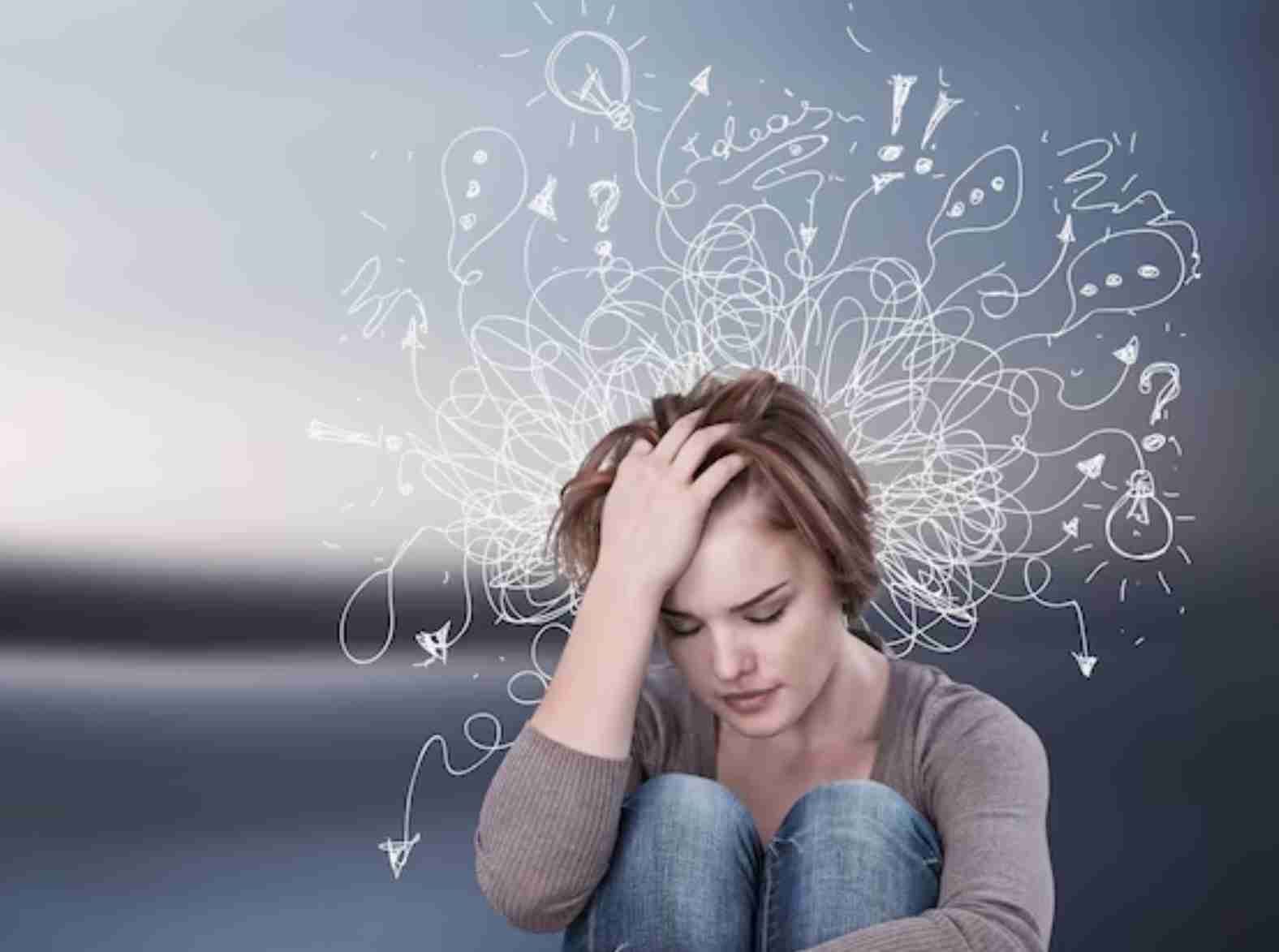 Ansiedade, a pessoa psicologicamente esgotada sofre de ansiedade, dificuldade de concentração, irritabilidade, fadiga, inquietação, bem como suor frio e taquicardia. Além disso, sente tristeza e angústia, muitas vezes, sem conseguir identificar a causa.