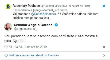 O senador Angelo Coronel (PSD), presidente da CMPI das Fake News, foi alvo de duras críticas nas redes sociais após ameaçar um perfil no Twitter.